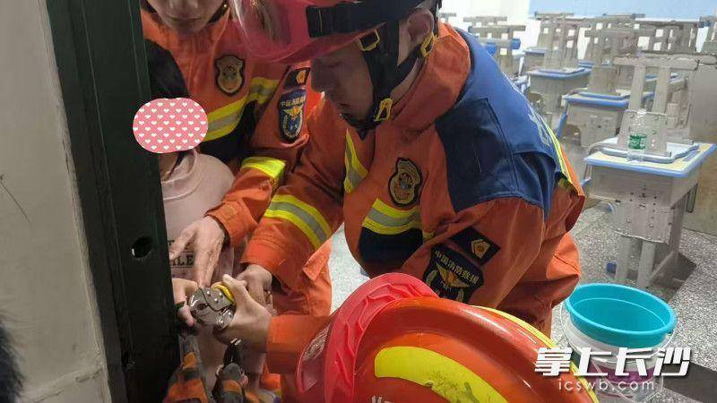 长沙晚报掌上长沙12月12日讯(通讯员 王磊)12月11日下午,长沙县消防救援大队黄兴消防救援站接到指挥中心调度称:黄兴镇螺塘湾西路中心小学一学生手指被卡需要救助。接警后,黄兴消防救援站立即赶赴现场处置。救援人员到场后看到,一名小学生手指被卡在教室门栓的孔洞中,此前已尝试多种方法均未能脱困。指挥员迅速制定救援方案,由一名消防员利用绝缘剪、老虎钳等器材,在确保安全的前提下对门栓孔洞实施精准破拆。同时,另一名队员全程安抚学生情绪,缓解其紧张感。整个操作过程谨慎细致,经过大约10分钟的营救,该名学生成功脱困,手指未受伤。